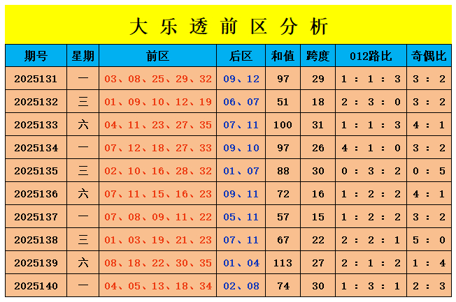 综合分析,大乐透本期012路比推荐为:2:1:2