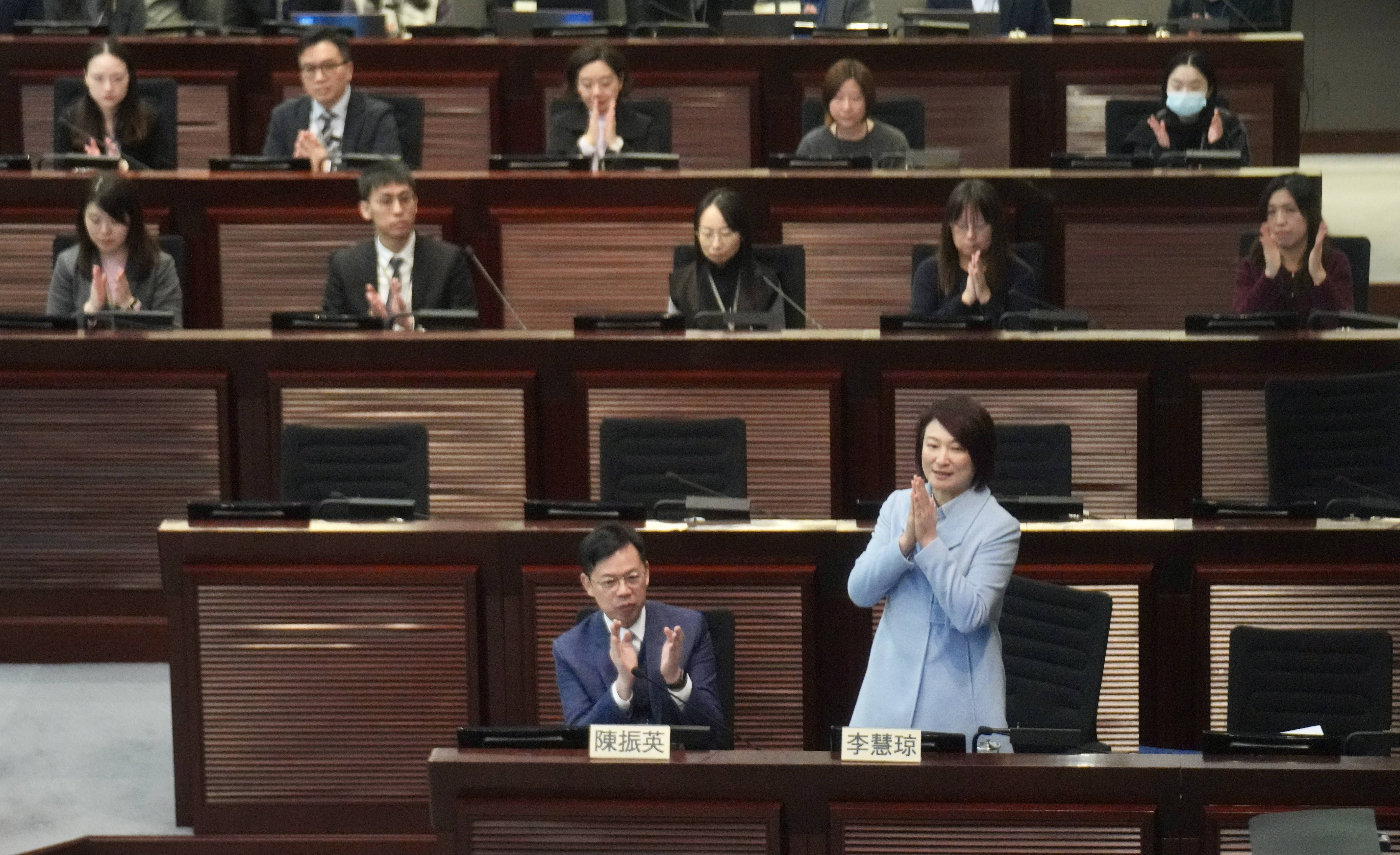最终,李慧琼以47票胜出,当选第八届立法会主席。
