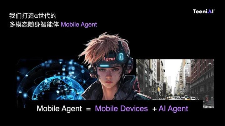 第二,是我今天想重点给大家分享的,Teeni.AI 在打造 α 时代的多模态随身智能体,我们称之为 Mobile Agent,实际上它是「移动设备+AI 智能体(Mobile Devices+AI Agent)」的结合体。