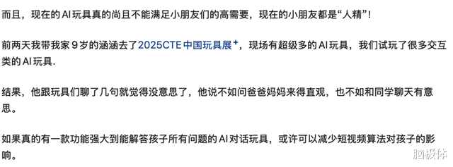 当前社交媒体上,针对AI玩具的吐槽远远多于赞美。